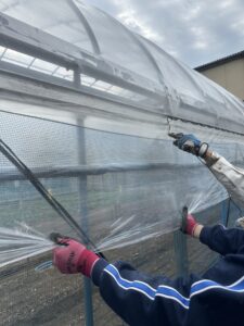 寒くなってきたので先日、畑のハウス張りを手伝ってきました。
