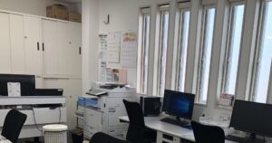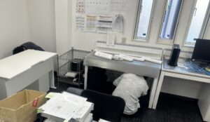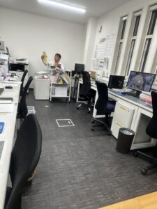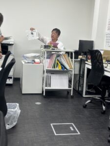 机を増やすため小島部長の後ろの棚を移動させます。