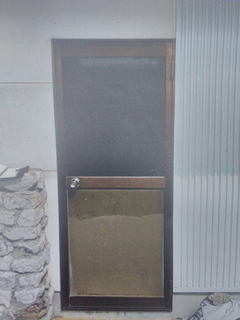 【南国市】勝手口ドア交換カバー工法 古い框ドアからドアリモ勝手口ドアへ交換。
